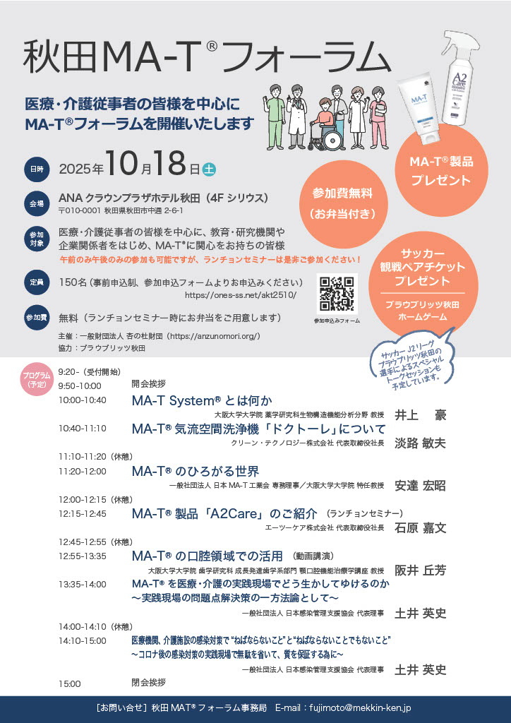 10月18日(土)、ANAクラウンプラザホテル秋田にて、「秋田MA-T®フォーラム」を開催しました。